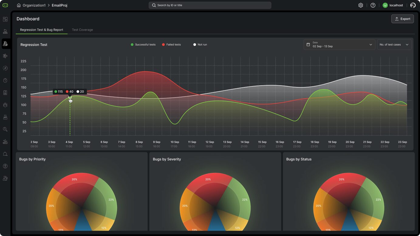 Xitester’s customizable dashboards provide real-time insights, allowing you to track critical metrics such as integration test results, test coverage, and bug statuses. Easily tailor your dashboard to showcase the information that matters most to your team.